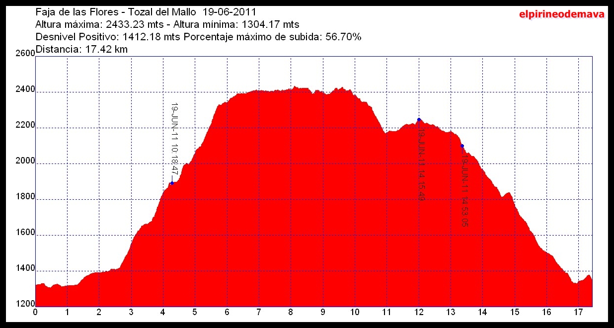 Recorrido realizado: Pradera de Ordesa - Clavijas de Cotatuero - Faja de las Flores - Tozal del Mallo - Clavijas de Carriata/Salarons - Pradera.