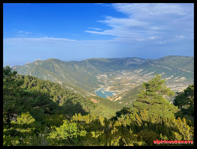 Vistas de la zona del embalse de Arguis, el pueblo y las sierras que lo circundan.